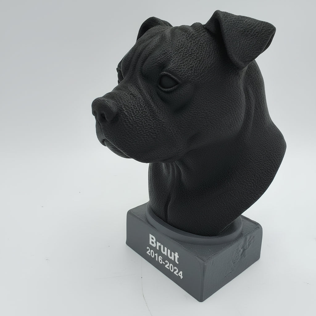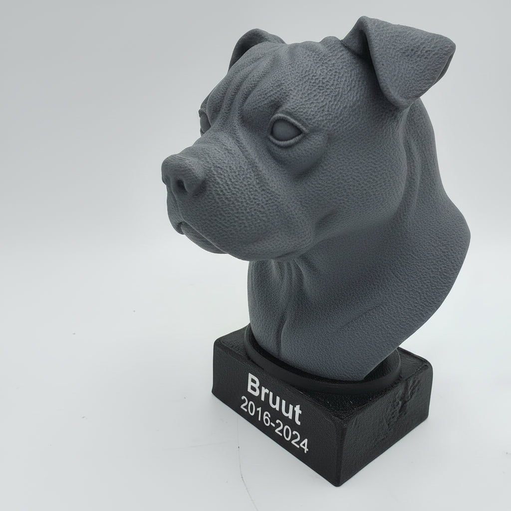 Met onze 3D-printtechnologie maken we urnen in een reeks standaard hondenrassen. Zo kiest u een model dat past bij het ras en de uitstraling van uw hond — van een trouwe Labrador tot een energieke Jack Russell.