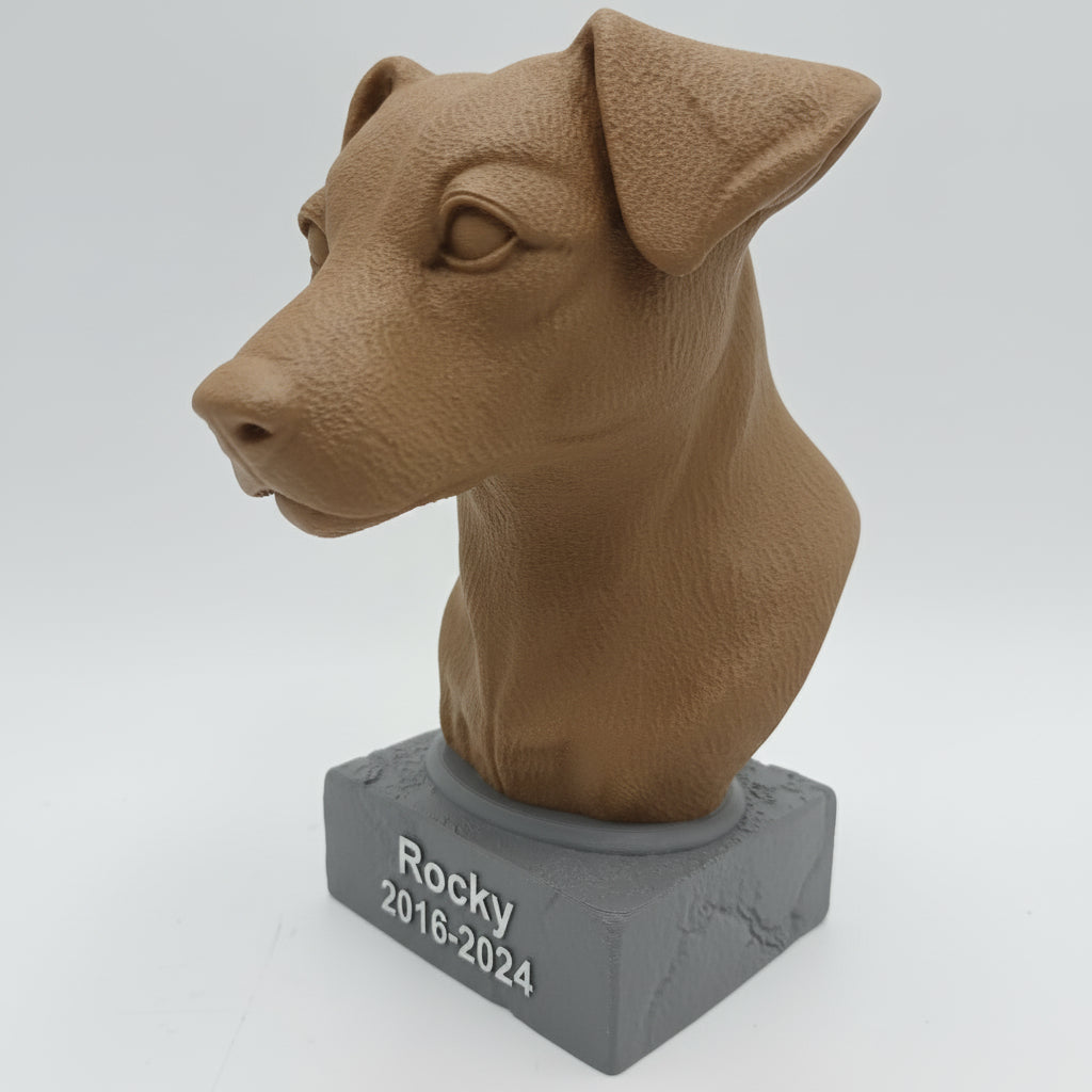Met onze 3D-printtechnologie maken we urnen in een reeks standaard hondenrassen. Zo kiest u een model dat past bij het ras en de uitstraling van uw hond — van een trouwe Labrador tot een energieke Jack Russell.