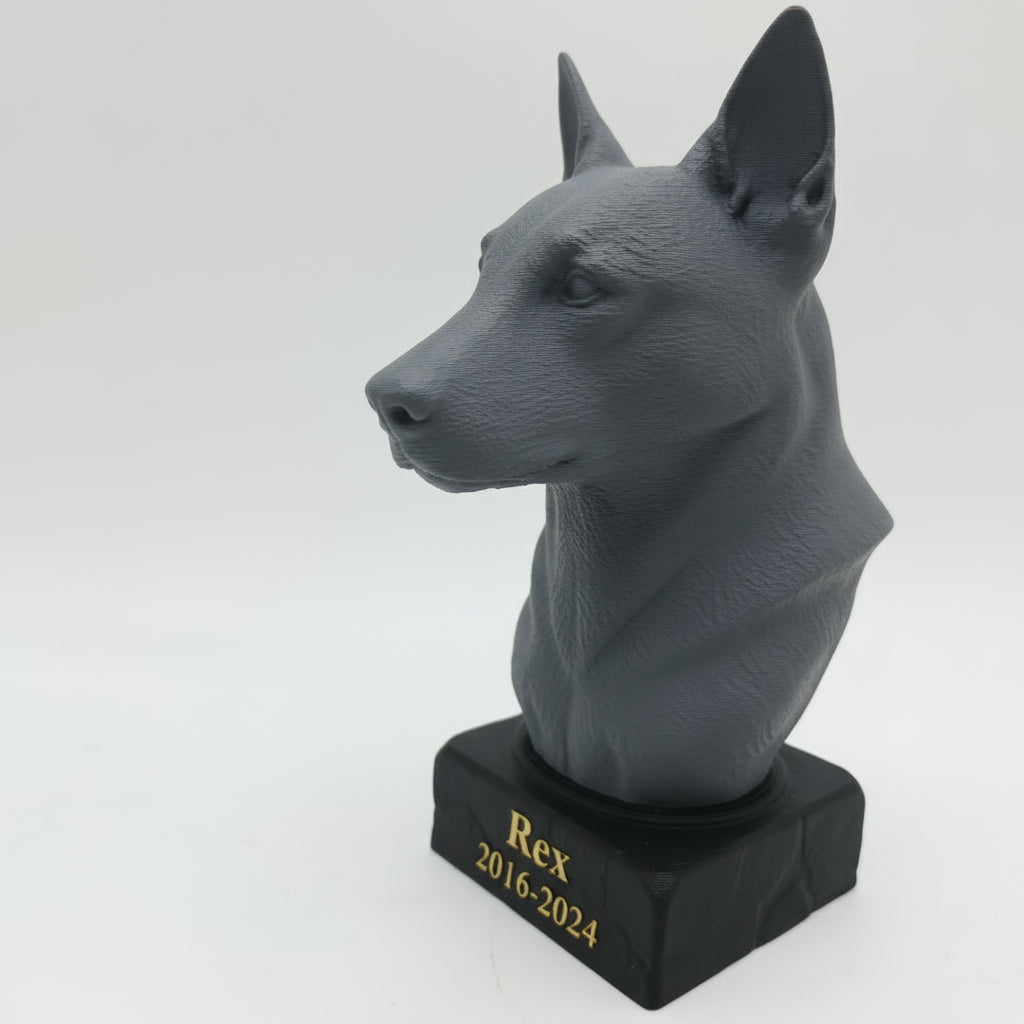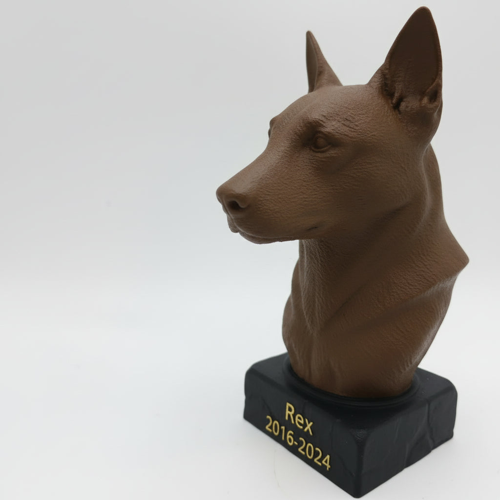 Met onze 3D-printtechnologie maken we urnen in een reeks standaard hondenrassen. Zo kiest u een model dat past bij het ras en de uitstraling van uw hond — van een trouwe Labrador tot een energieke Jack Russell.